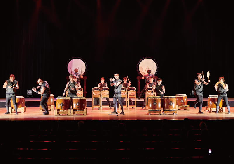 楽曲のレパートリーは「がいな太鼓」「旋風」「日本海」「風雅」「雄飛」や、近年がいな祭で披露している万灯・がいなCONとのコラボレーション演奏など多岐に渡ります。様々な状況にあわせ、演奏披露の形態を変化できる柔軟な対応が極ならではの技術力です。